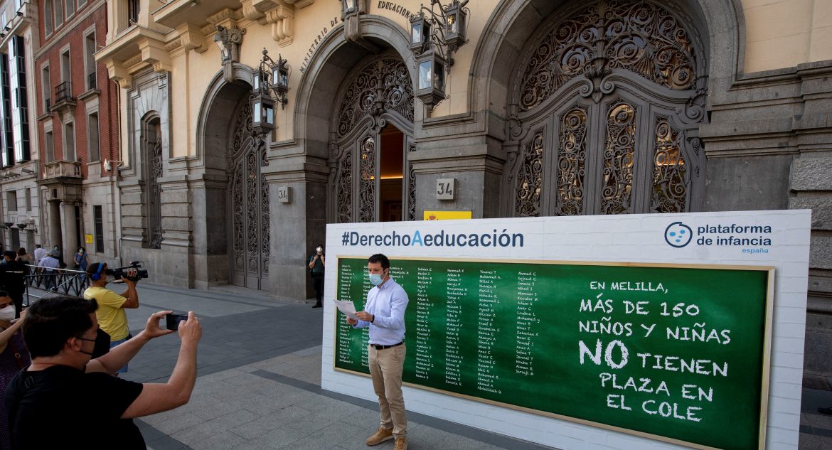 La Plataforma de Infancia está recogiendo firmas tanto de personas individuales como de organizaciones en un manifiesto que se ha leído esta mañana en la puerta del Ministerio de Educación. Hasta el momento 45 organizaciones y/o asociaciones profesionales se han adherido ya a este manifiesto, entre ellas la Unión Progresista de Fiscales, la Asociación de Mujeres Juezas de España, Amnistía Internacional, Cáritas, CEAR, Oxfam Intermón, Save the Children o UNICEF. Estas firmas se enviarán tanto a la Ministra de Educación, como a la Delegación de Gobierno de Melilla, para pedir que se les otorgue una plaza escolar a estos niños para el curso 2021/2022, que garanticen que todo niño y niña en territorio español acceda sin barreras a su derecho a la educación; y que aborden específicamente esta grave vulneración de derechos que está sucediendo en Melilla desde hace años reformando para ello la Orden del Ministerio de Educación que regula la admisión de alumnos en Ceuta y Melilla.