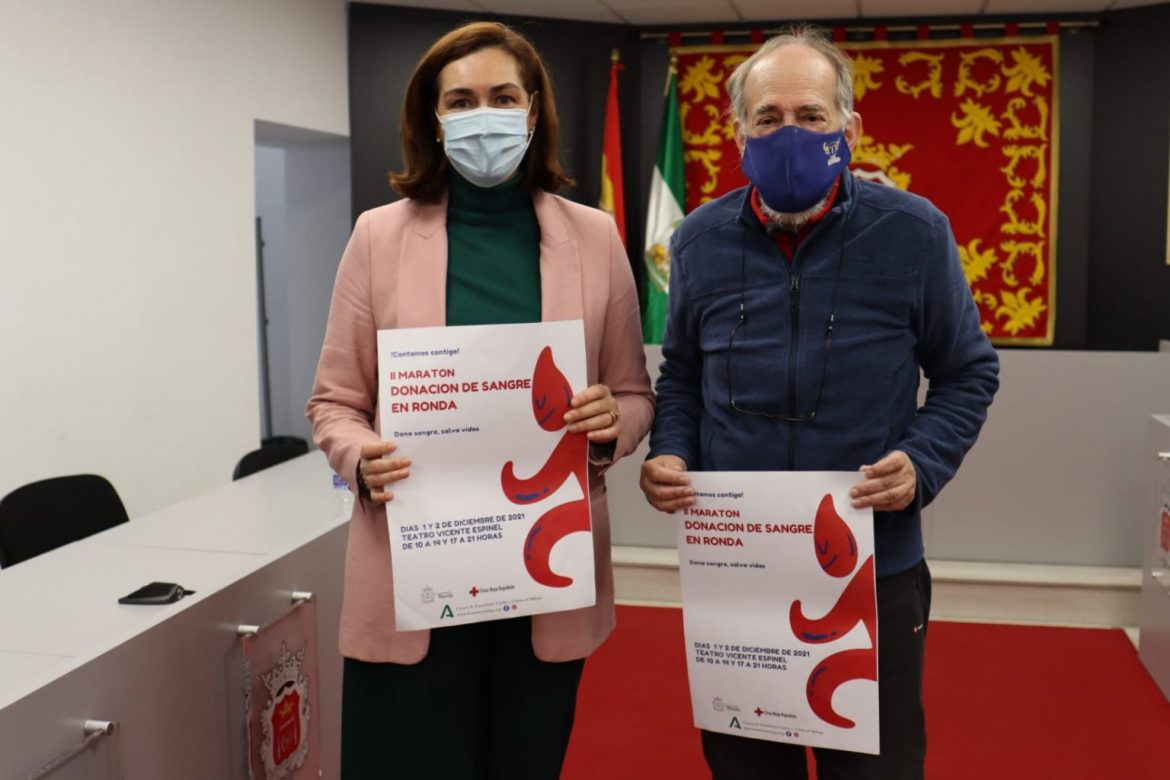 La delegada de Bienestar Social, Cristina Durán, acompañada por el presidente de Cruz Roja en Ronda, Antonio Lasanta, ha informado de la celebración los días 1 y 2 de diciembre del II Maratón de Donación de Sangre en Ronda organizado por el Centro Regional de Transfusión Sanguínea de Málaga con la colaboración del Ayuntamiento de Ronda y Cruz Roja. La colecta tendrá lugar en el Teatro Vicente Espinel en horario de 10,00 horas a 14,00 horas y de 17,00 horas a 21,00 horas. Además de esta actividad también se ha anunciado que el teatro acogerá este miércoles, a las 12,00 horas, un acto en el que se reconocerá a las personas que más donaciones han realizado. “Es una manera sencilla de agradecer y reconocer esta acción generosa que salva vidas”, ha dicho Durán quien ha vuelto a hacer un llamamiento a los rondeños para que vuelvan a acudir masivamente a donar sangre.