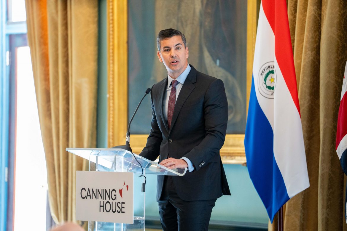 En el marco de su visita oficial al Reino Unido, el presidente de la República, Santiago Peña, mantuvo una reunión con inversionistas británicos en la sede de Canning House, el centro anglohispánico de referencia en Londres. El mandatario estuvo acompañado por el ministro de Industria y Comercio, Javier Giménez, el canciller nacional Rubén Ramírez y el asesor jurídico de la presidencia, el ministro Roberto Moreno, entre otras autoridades.