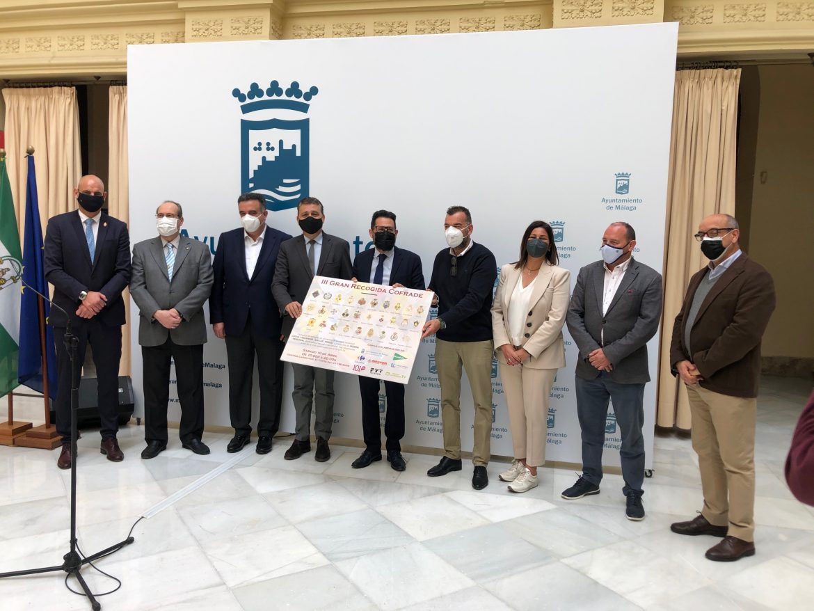 El concejal de Derechos Sociales, Francisco Pomares, junto a representantes de diferentes cofradías de la ciudad, ha presentado la III Gran Recogida Cofrade, que tendrá lugar el 10 de abril de 10:00 a 20:00 h. en los centros Carrefour, El Corte Inglés y Maskom. Los alimentos y los productos de higiene personal que se recauden serán distribuidos entre las familias afectas por la crisis social y económica del Covid-19.