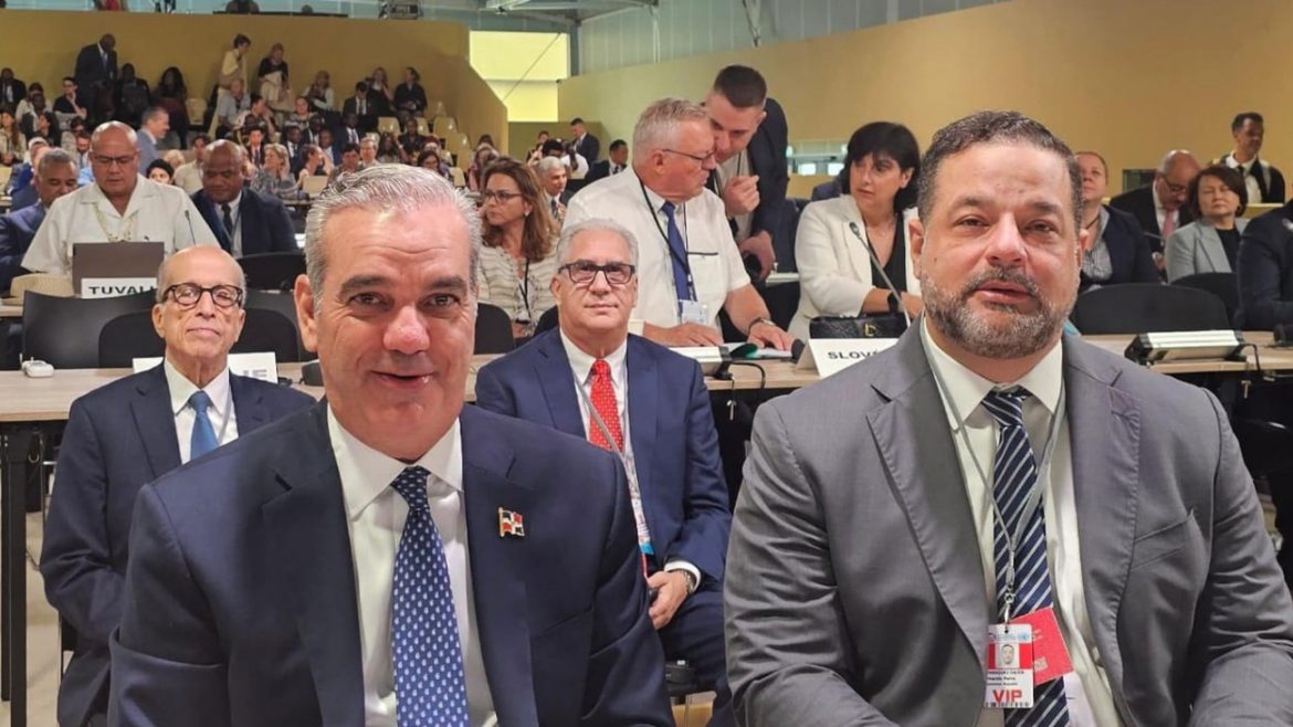 El mandatario dominicano participa en el evento acompañado del ministro de Medio Ambiente y Recursos Naturales, Paíno Henríquez; el vicepresidente ejecutivo del Consejo del Cambio Climático y Mecanismo de Desarrollo Limpio, Max Puig; el presidente de la Autoridad Nacional de Asuntos Marítimos, Jimmy García Saviñón; el embajador, representante permanente ante la ONU, Wellington Bencosme, y el embajador dominicano en Francia, David Puig.