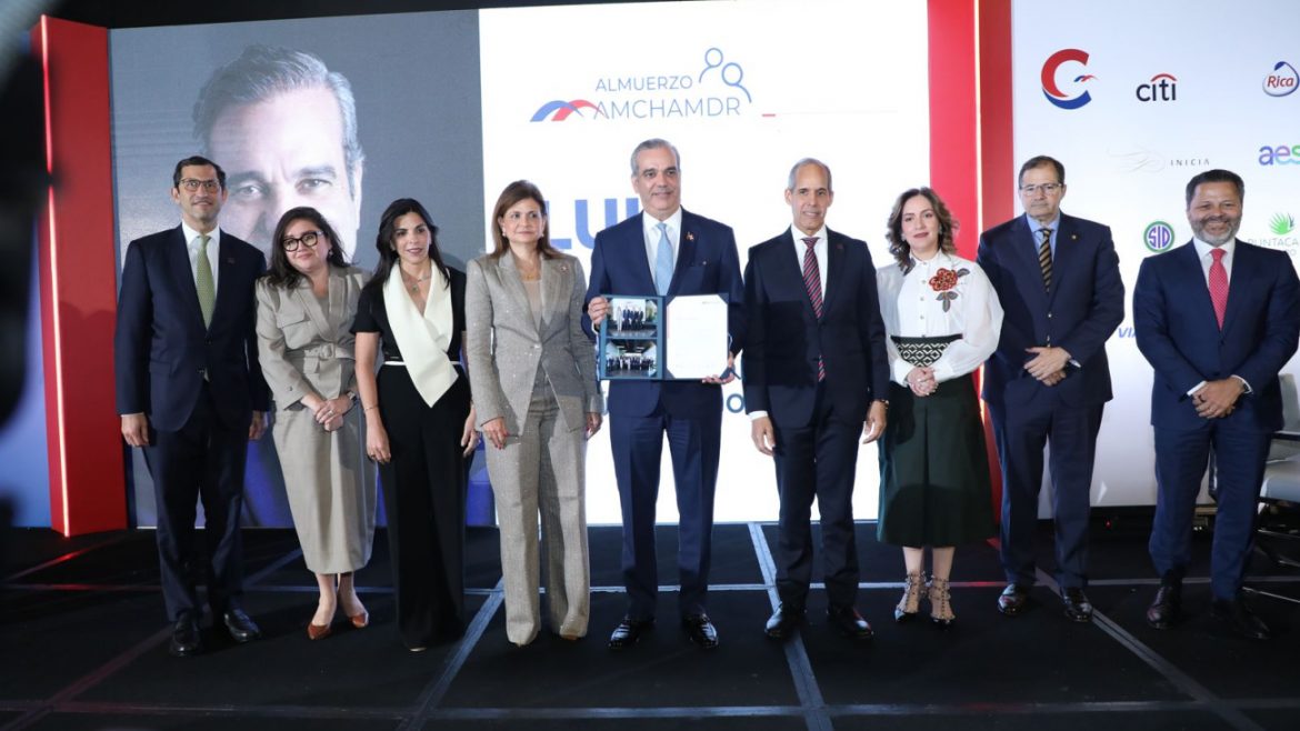 El presidente Luis Abinader asistió como orador invitado y huésped de honor al tradicional almuerzo de la Cámara Americana de Comercio de la República Dominicana (AMCHAMDR), donde afirmó que la República Dominicana de hoy está más fuerte, más próspera y más preparada para el futuro que nunca antes.