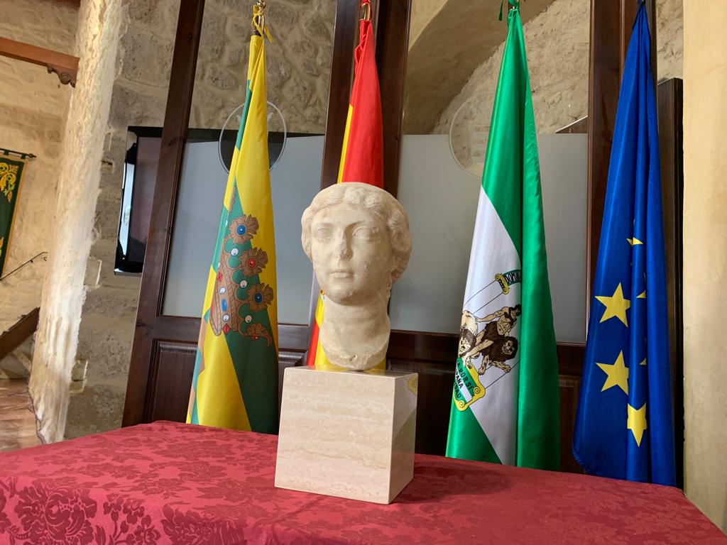 La Guardia Civil y el Ministerio de Cultura y Deporte han hecho entrega hoy al Ayuntamiento de Bornos de la cabeza romana de Antonia Minor, un busto que data del siglo I y que fue robado en 2010 de su lugar de exposición en la localidad gaditana.
