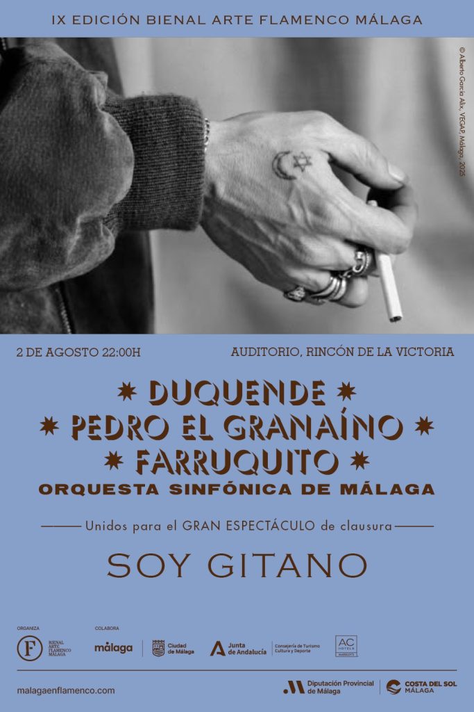 ‘Soy gitano’, de 80 minutos de duración, es una idea original del director de la Bienal de Arte Flamenco de Málaga y director de la Delegación de Cultura de la Diputación, Antonio Roche González, y cuenta con la coordinación técnica y regiduría de Patricia Gea.