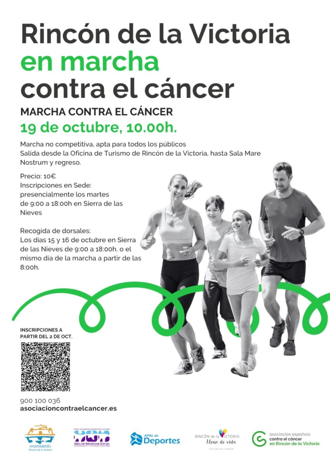 La marcha solidaria contra el Cáncer de Mama, que cuenta con la colaboración del APAL de Deportes del Ayuntamiento de Rincón de la Victoria, se celebrará el próximo sábado 19 de octubre con salida a las 10:00 horas desde la Oficina de Turismo de Rincón de la Victoria con un recorrido que llegará hasta la Sala Mare Nostrum de La Cala del Moral, y regreso.