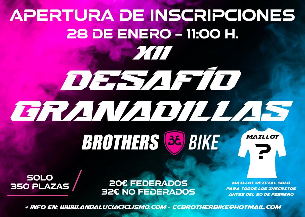 La Concejalía de Deportes del Ayuntamiento de Rincón de la Victoria junto al Club Ciclismo Brothers Bike han anunciado que la apertura de inscripciones del XII Desafío Granadillas BTT se abrirán a partir de hoy martes 28 de enero.