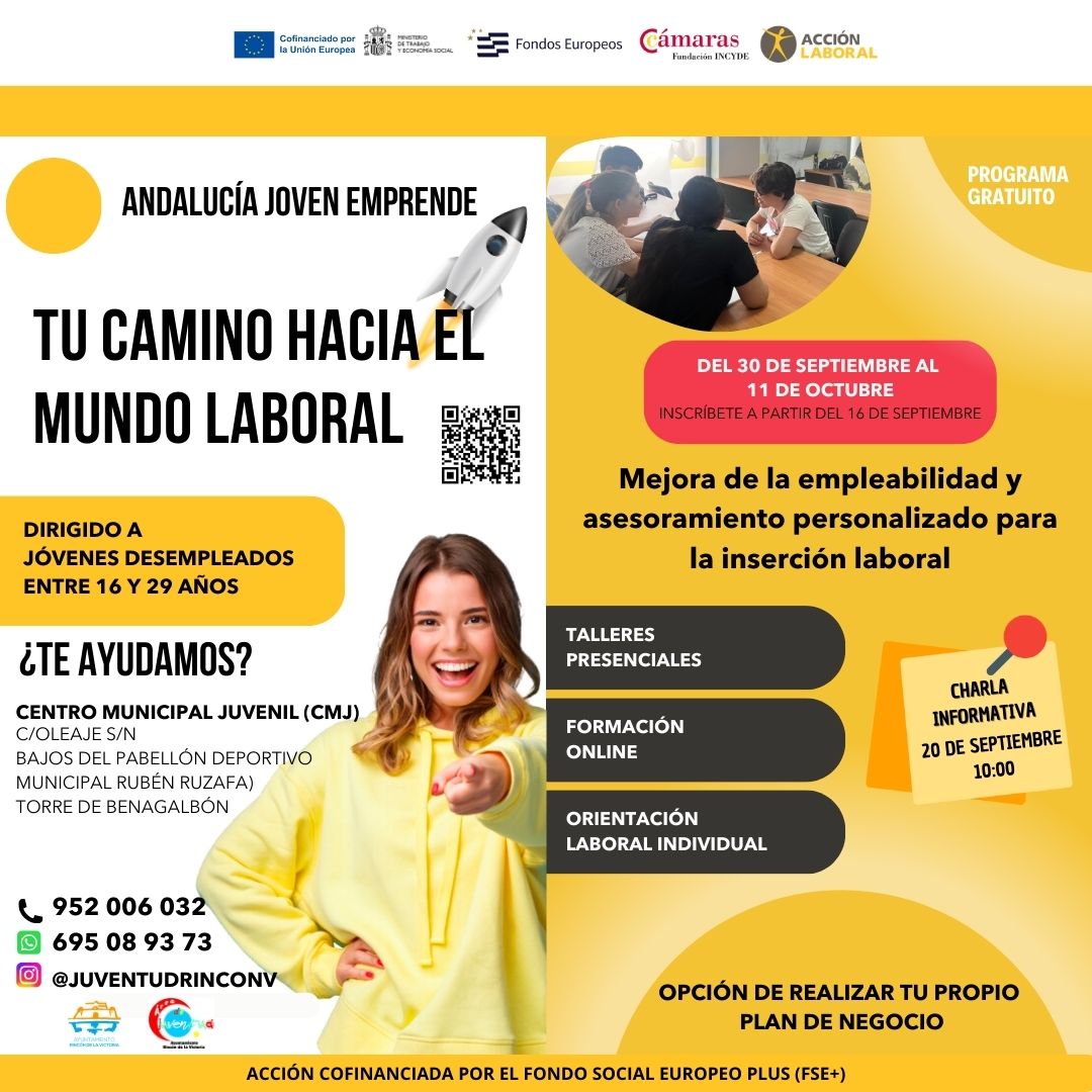 Los objetivos del programa son mejorar la empleabilidad, recibir asesoramiento personalizado para acceder al mundo laboral o realizar un plan de negocio propio La formación se llevará a cabo del 30 de septiembre al 11 de octubre Las preinscripción se pueden realizar desde este lunes 16 de septiembre en el siguiente enlace: https://www.rincondelavictoria.es/andalucia-joven-emprende El viernes 20 de septiembre se realizará una charla informativa en el Centro Municipal Juvenil a las 10.00 horas