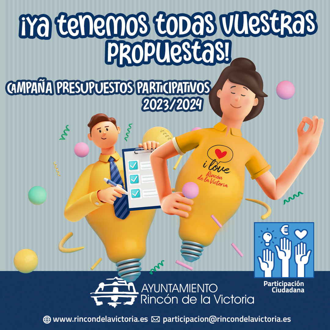 El Ayuntamiento de Rincón de la Victoria ha cerrado la primera de las fases de la nueva campaña de Presupuestos Participativos que se está llevando a cabo desde el área de Participación Ciudadana. Y lo ha hecho con récord de participación, alcanzando las 522 propuestas presentadas, 313 más que en la pasada edición.