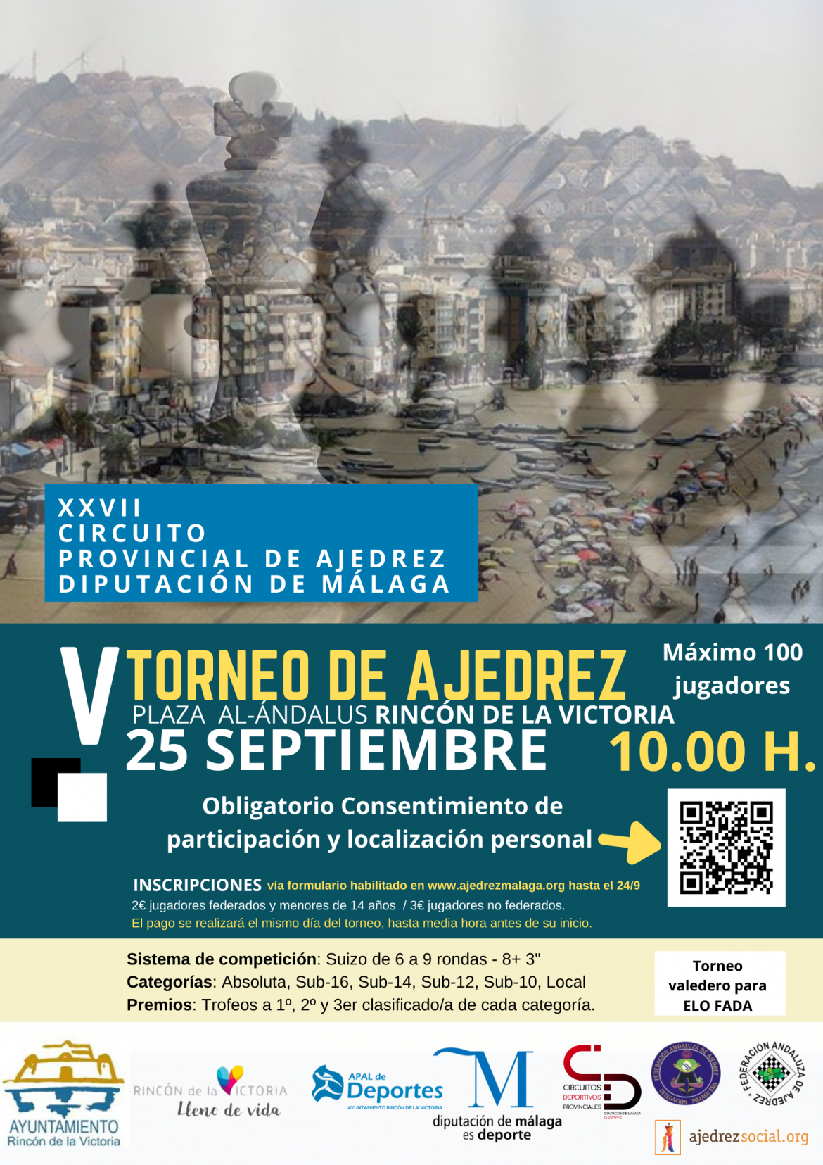 La cita tendrá lugar en la Plaza Al-Ándalus el sábado 25 de septiembre a partir de las 10:00 horas. Se trata de un torneo valedero para ELO FADA. El plazo de inscripción permanecerá abierto hasta un día antes del torneo para personas federadas y no federadas.