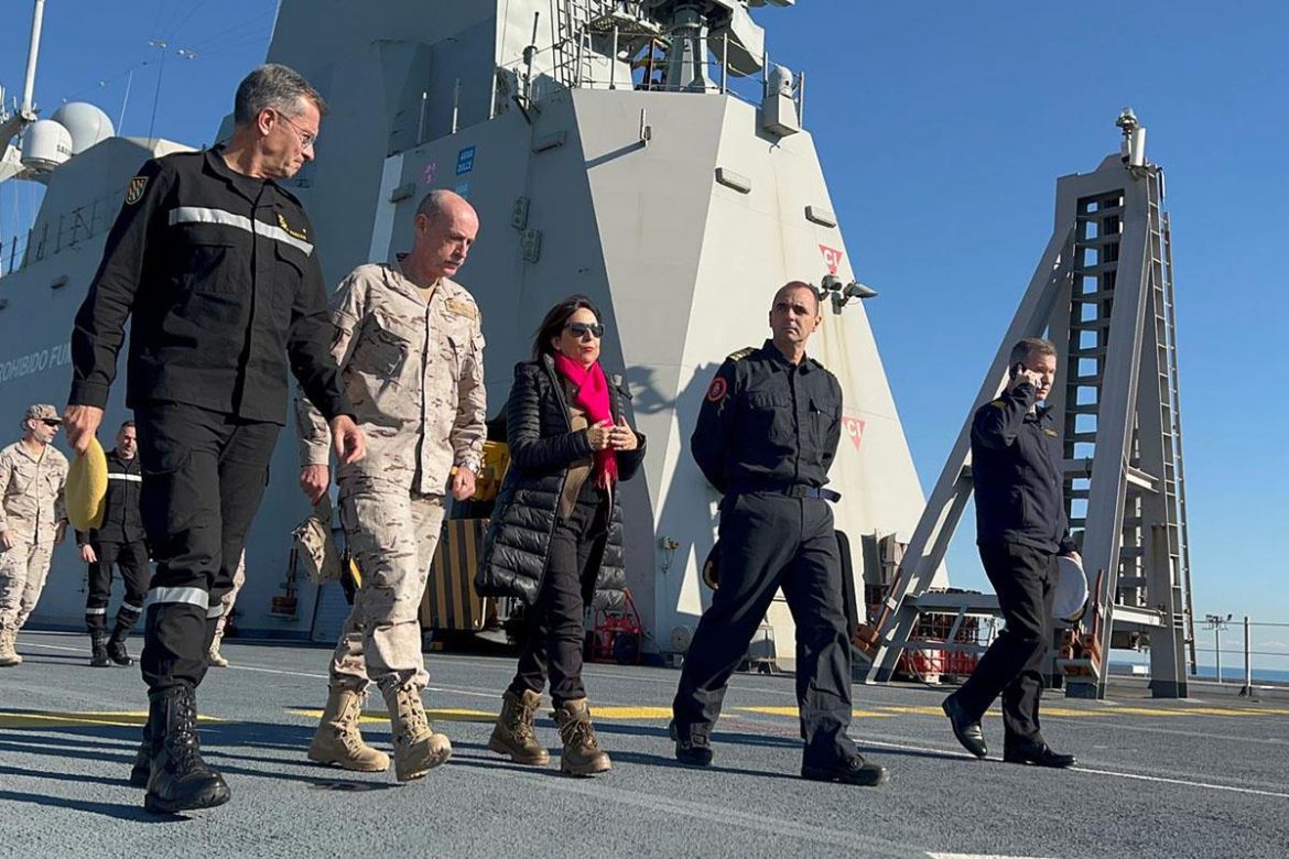 Entre los cometidos del buque de proyección estratégica ‘Juan Carlos I’. que ha visitado la ministra, están el proporcionar apoyo logístico y alojamiento, funcionar como plataforma para operaciones aéreas y la puesta a disposición de un hospital.