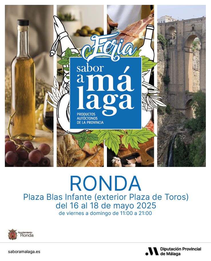 Ronda acoge este fin de semana la feria ‘Sabor a Málaga’,con la participación de 27 productores de toda la provincia. Del viernes 16 al domingo 18 de mayo, en horario de 11.00 a 21.00 horas y en la plaza Teniente Arce, se podrán degustar más de 300 productos provenientes de todas las comarcas malagueñas.