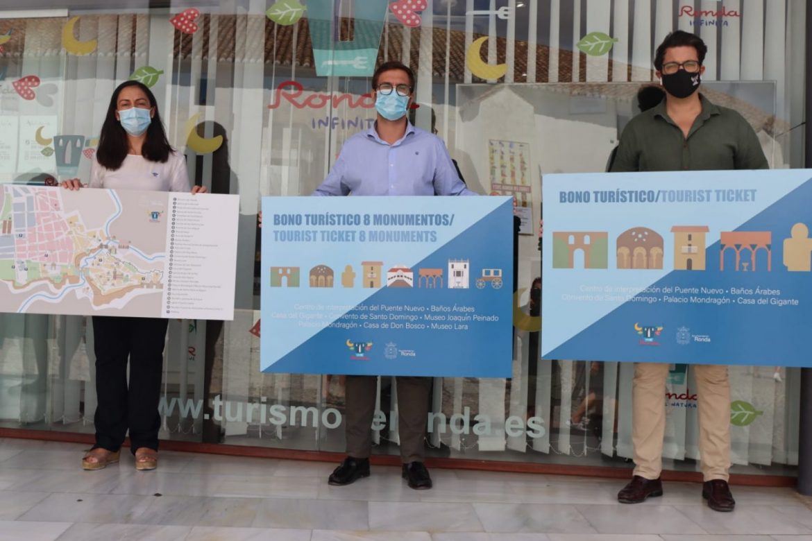 El delegado de Turismo, Ángel Martínez, ha presentado el nuevo bono turístico de Ronda en el que se han incorporado nuevos espacios de interés para el visitante gracias a la colaboración pública y privada, según ha recordado el responsable municipal. Así, además de monumentos como el Puente Nuevo, los Baños Árabes, la Casa del Gigante y el Palacio de Mondragón los turistas también podrán acceder con este bono al Museo Unicaja Joaquín Peinado, el Museo Lara y la Casa Don Bosco. “Este bono, en el que llevamos meses trabajando y firmando acuerdos con empresarios de la ciudad que regentan lugares de interés turístico, supone incorporarlos al paraguas de Turismo de Ronda permitiendo así que aumenten sus ventas”, ha dicho Martínez.
