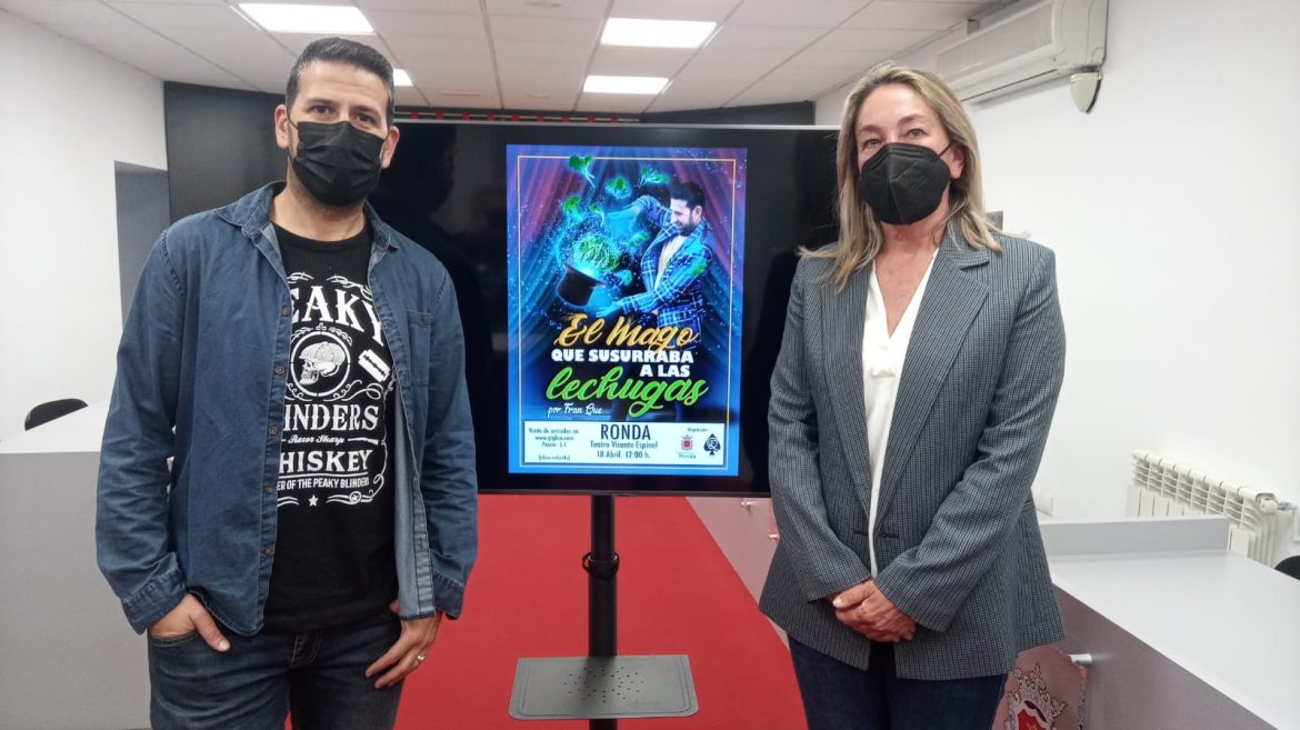 El domingo 18 se estrena el nuevo espectáculo de magia del rondeño Fran Qué, bajo el nombre de ‘El mago que susurraba a las lechugas’. Será a las 12.00 horas en el teatro municipal y las entradas están a la venta al precio de cinco euros en www.giglon.com y en la Casa de la Cultura. Precisamente, el propio mago ha acompañado a la concejal en esta presentación afirmando que el nuevo montaje es muy arriesgado al contar con muchos tipos de magia, llevando estos espectáculos familiares a otro formato muy variados.