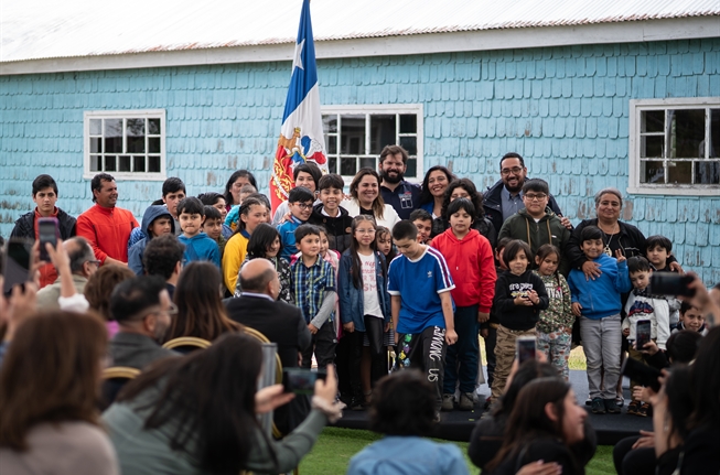 El mandatario fue parte del hito que inició las obras de mejoramiento de la Escuela Rural Huyar Alto en Curaco de Vélez, junto al ministro de Educación, la alcaldesa de la comuna, profesores, apoderados, apoderadas y estudiantes del establecimiento