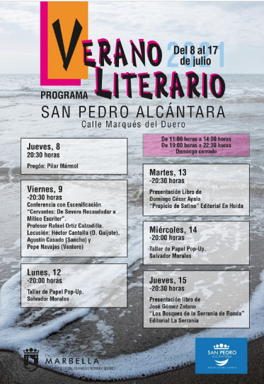 El Área de Cultura de San Pedro Alcántara informa de que desde hoy día 8 y hasta el 17 de julio tendrá lugar la celebración del ‘Verano Literario’, que se desarrollará de 11.00 a 14.00 horas y de 19.00 a 22.30 horas en la calle Marqués del Duero y contará con la participación de las librerías Espacio Lector Nobel y Delta, de San Pedro, y Ediciones Algorfa/Librería Alfaqueque, de Marbella. La iniciativa se inaugurará mañana, a las 11.00 horas, y a las 20.30 horas tendrá lugar el pregón a cargo de Pilar Mármol, licenciada en Filología Hispánica y profesora y jefa del Departamento de Lengua Castellana y Literatura en el IES Guadaiza de San Pedro Alcántara. Autora de diversos libros, es también una conocida activista feminista, con influencia en las redes sociales, donde tiene miles de seguidores a los que acerca un mensaje de igualdad a personas jóvenes y adultas.