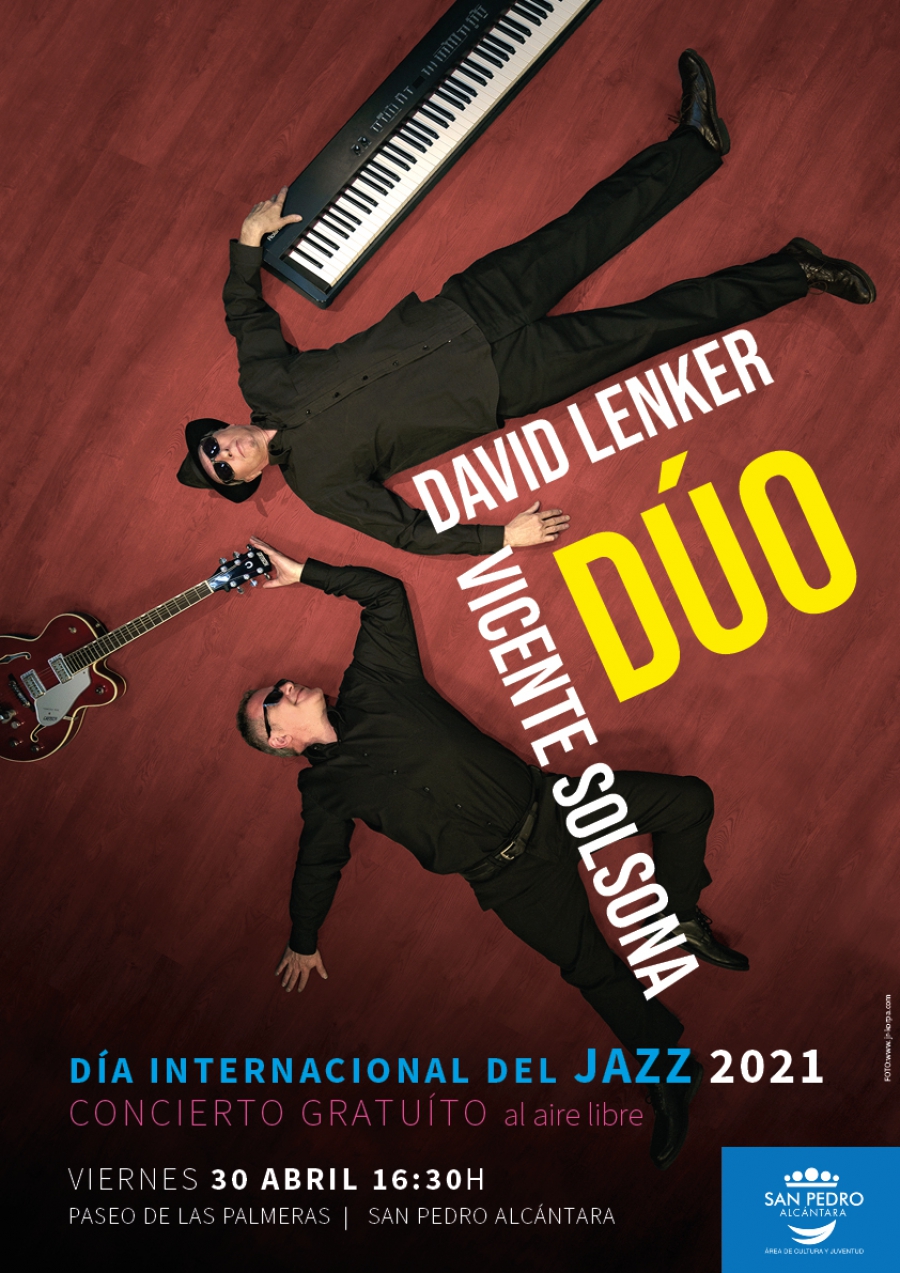 San Pedro Alcántara se sumará este viernes día 30 a la celebración del Día Internacional del Jazz con un concierto de David Lenker-Vicente Solsona Dúo, que tendrá lugar a las 16.30 horas en el Paseo de las Palmeras. David Lenker y Vicente Solsona se conocen desde hace más de diez años y comparten su inquietud por la improvisación y la búsqueda de nuevos caminos musicales a través de la composición. Su repertorio está integrado tanto por temas propios como por arreglos que pretenden ser un homenaje a algunos de sus intérpretes más admirados del jazz y la música popular, como Bill Evans, Michel Legrand, Antonio Carlos Jobim o Lennon & McCartney.