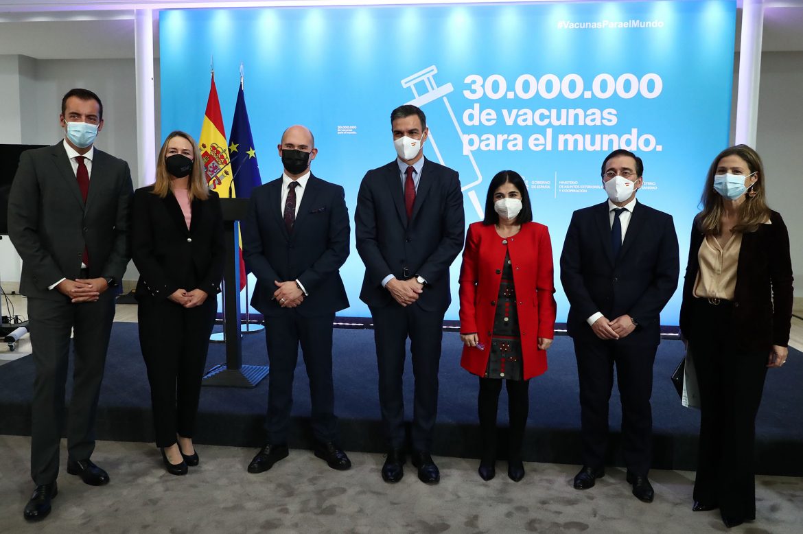 El Gobierno de España ha conseguido donar a COVAX de más de 30 millones de dosis de vacunas contra la COVID-19 antes de acabar el 2021, de las que más de 7,5 millones han llegado a Latinoamérica, y compartir conocimiento para lograr el avance de la ciencia y de la sociedad. Por ello, España ha liberado la patente del test serológico del CSIC para la detección del virus. España que ya ha empezado a administrar la tercera dosis a mayores de 60 años y a los trabajadores sanitarios y sociosanitarios, cuenta con el 89% de la población mayor de 12 años con la pauta completa.