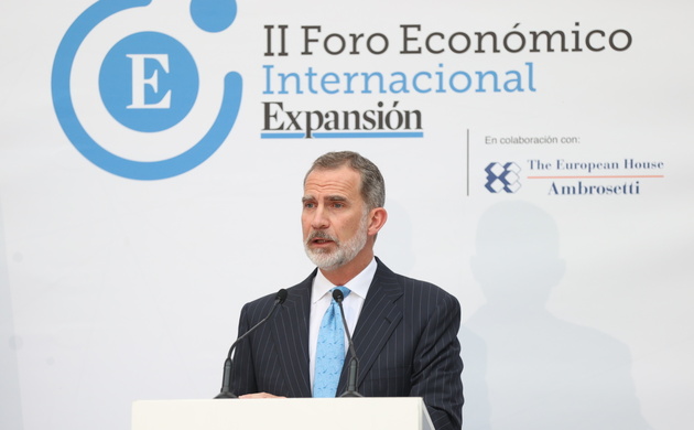Su Majestad el Rey inauguró, durante el transcurso de una cena institucional, la segunda edición del Foro Económico Internacional organizado por el diario EXPANSIÓN, especializado en información económica, financiera y empresarial, en colaboración con The European House Ambrosetti, bajo el epígrafe “Construyendo un mundo sostenible para las nuevas generaciones”