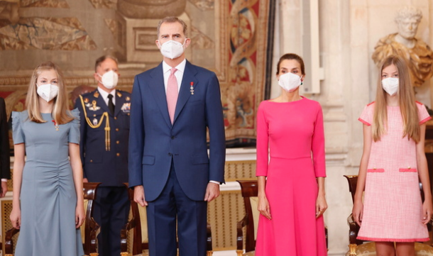 Durante el acto, Sus Majestades los Reyes, Su Alteza Real la Princesa de Asturias y de Su Alteza Real la Infanta Doña Sofía estuvieron acompañados por la ministra de Asuntos Exteriores, Unión Europea y Cooperación y Gran Canciller de la Orden del Mérito Civil, Arancha González Laya; la subsecretaria de Asuntos Exteriores, Unión Europea y Cooperación y Canciller de la Orden del Mérito Civil, María Celsa Nuño; y por la directora general de Protocolo, Cancillería y Órdenes y secretaria de la Orden del Mérito Civil, Caridad Batalla.