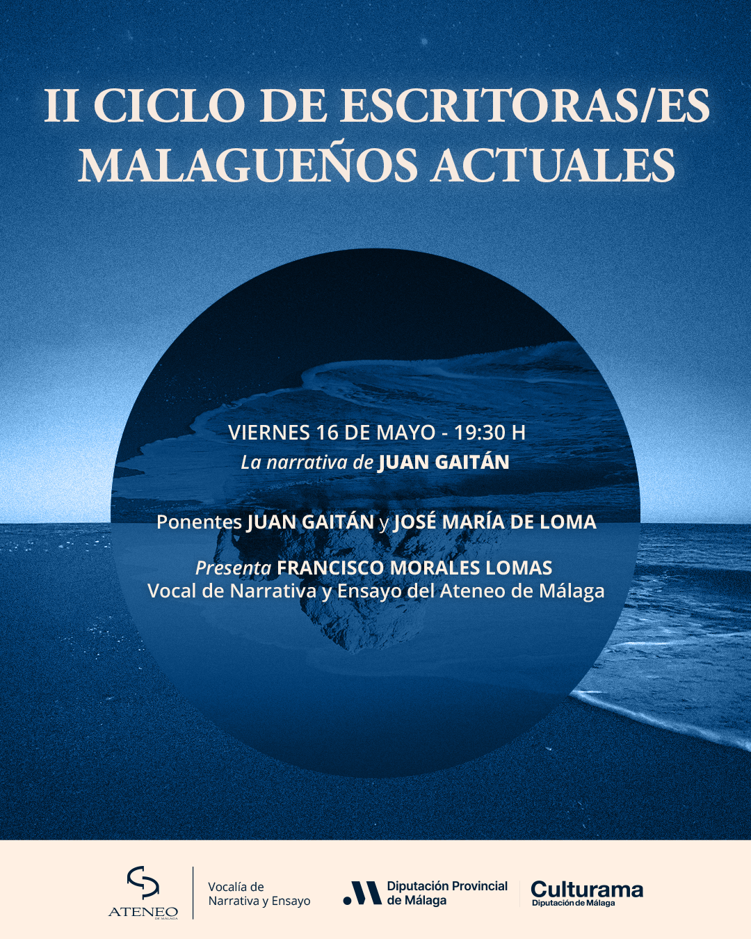 El mismo día, a las 19.30 horas, tendrá lugar en el Salón de Actos del Ateneo una nueva sesión del Ciclo de escritoras/es malagueños actuales, organizado por la Diputación de Málaga y la Vocalía de Narrativa y Ensayo del Ateneo de Málaga. La entrada es libre hasta completar aforo.