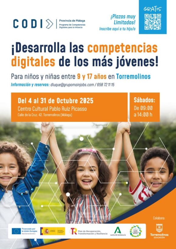 El Ayuntamiento de Torremolinos, a través de la delegación de Educación, informa sobre la apertura del plazo de inscripción del Programa de Competencias Digitales para la Infancia (CODI), promovido por la Junta de Andalucía, que se desarrollará en el municipio del 4 al 31 de octubre del presente año.