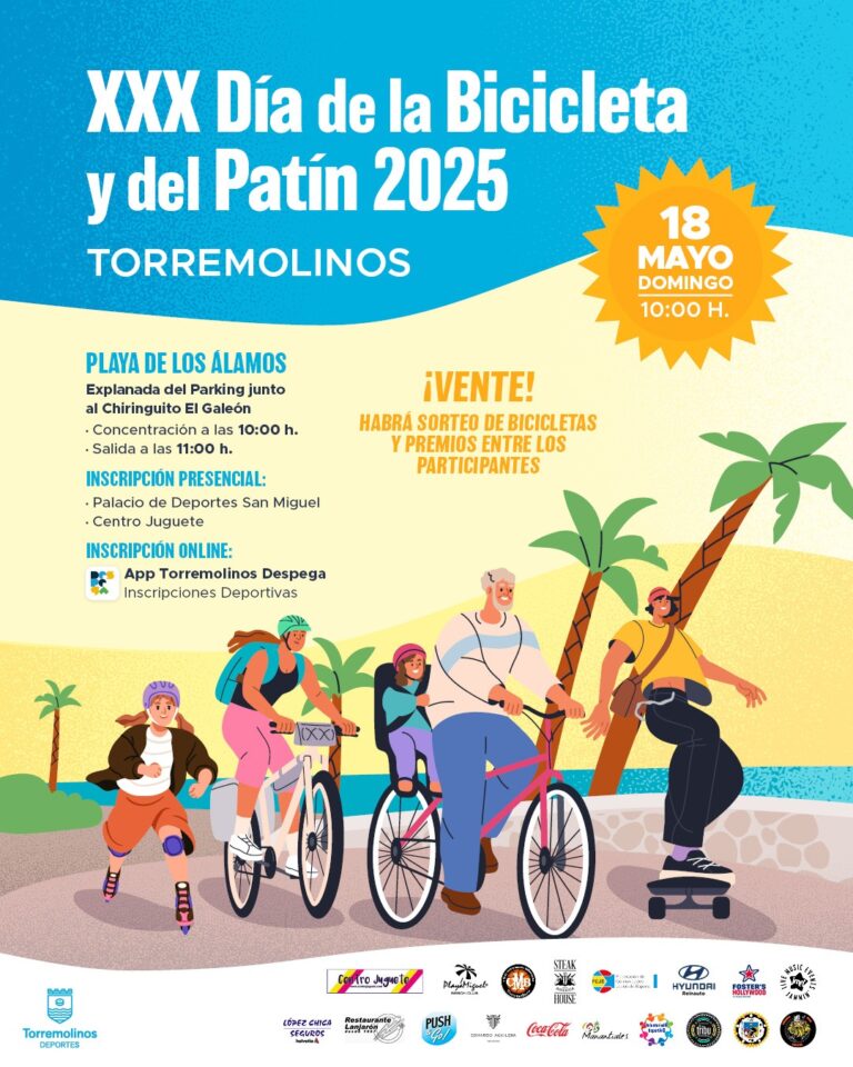 Torremolinos celebrará el próximo domingo 18 de mayo el `Día de la Bicicleta y del Patín´, un evento participativo que alcanza este año su XXX edición y que impulsa la Delegación de Deportes del Ayuntamiento de Torremolinos.