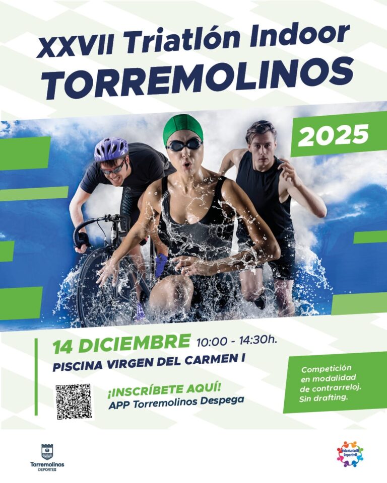 El Triatlón Indoor Ciudad de Torremolinos, única competición de estas características de la provincia, se celebrará el domingo 14 de diciembre. Una cita deportiva que mantiene su plazo de inscripción abierto y que cumple esta temporada su XXVII edición.