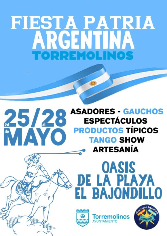 Cultura y gastronomía se unen en la ‘Fiesta Patria Argentina’ que tendrá lugar del 25 al 28 de mayo en el oasis de la Playa del Bajondillo, entre las 12:00 y las 00:30 horas.
