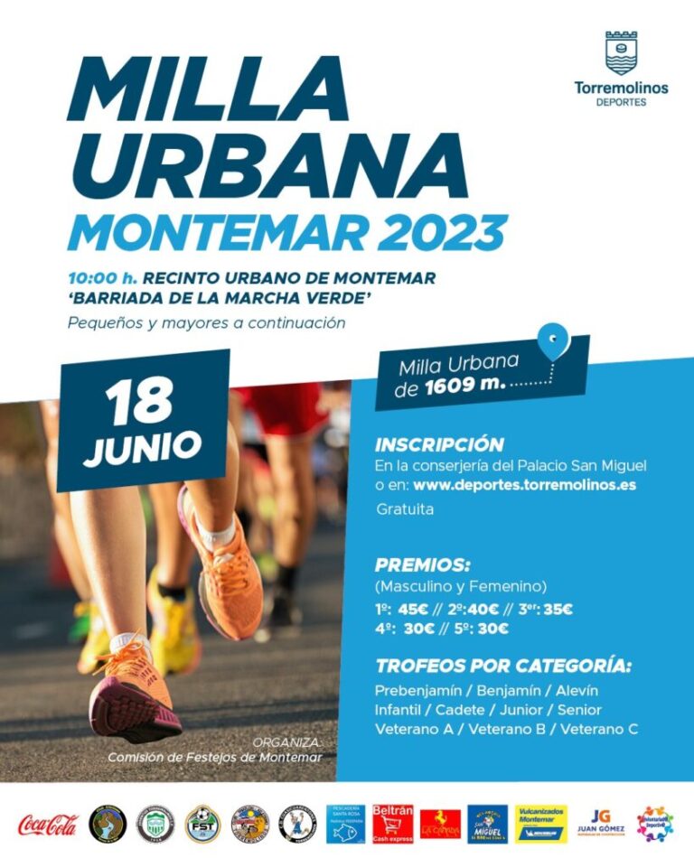 La delegación de Deportes del Ayuntamiento de Torremolinos, en colaboración con la Comisión de Festejos de Montemar, organizan este próximo domingo 18 de junio la clásica Milla Urbana. La competición, que tiene previsto su inicio a las 10:00 horas, tendrá su punto de salida y meta desde la calle Decano Miguel Marengo.