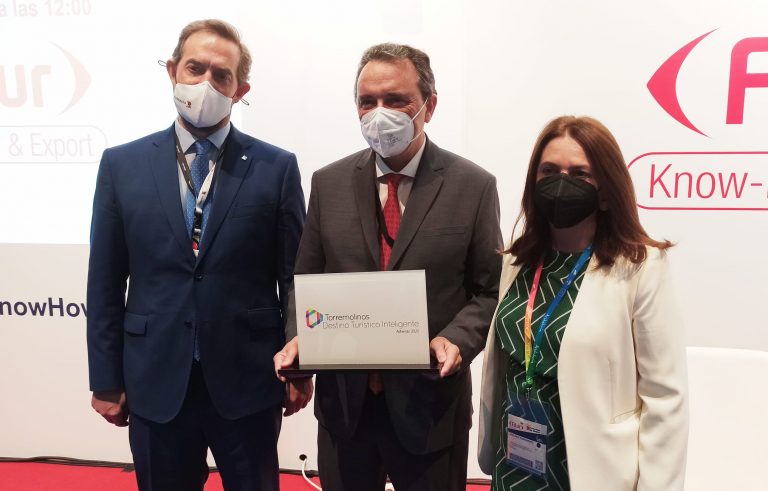 El alcalde de Torremolinos, José Ortiz, ha recibido en nombre de la ciudad el certificado de Destino Turístico Inteligente (DTI), un reconocimiento por parte de la Sociedad Estatal para la Gestión de la Innovación y las Tecnologías Turísticas (SEGITTUR), perteneciente a la secretaría de Estado de Turismo que ha recibido de la mano de la ministra de Turismo, Reyes Maroto, acompañada del representante de la secretaría Fernando Valdés, y que posiciona a la ciudad como un destino que apuesta por la innovación y la tecnología para avanzar en materia turística.