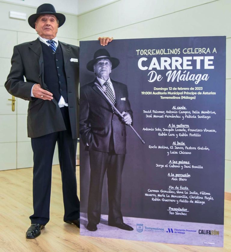 El Auditorio Municipal Príncipe de Asturias acogerá el domingo 12 de febrero a partir de las 19:00h el espectáculo ‘Torremolinos celebra a Carrete de Málaga’ homenaje al gran bailaor José Losada “Carrete”, que se ha presentado hoy en un acto que ha contado con la asistencia de la alcaldesa de Torremolinos, Margarita del Cid, el concejal de Cultura, Francisco García Macías, el director del evento, Paco Roji, el productor, Andrés Varea y el propio artista.