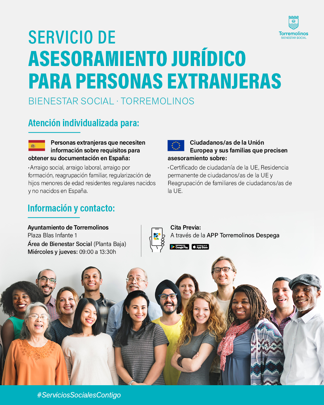 El servicio se ofrece todos los miércoles y jueves, en horario de 9:00h a 13:30h, a cargo de una abogada experta en extranjería que se encargar de ofrecer esta orientación, siendo necesario concertar cita previa a través de la app ‘Torremolinos Despega’, o gestionando la misma con las trabajadoras sociales del Ayuntamiento.