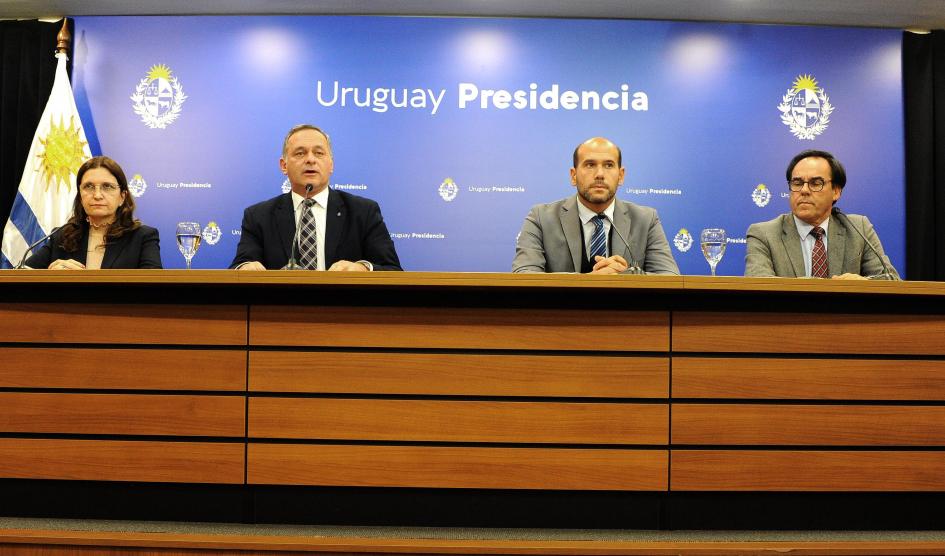 Durante la conferencia para realizar los anuncios en la noche de este martes 16, en Torre Ejecutiva, Delgado estuvo acompañado por los ministros de Desarrollo Social, Martín Lema; de Salud Pública, Karina Rando, y de Ambiente, Robert Bouvier.
