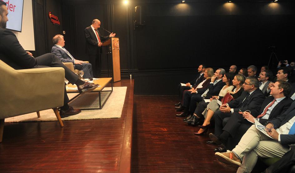 El ministro de Trabajo, Pablo Mieres, expuso, este miércoles 25, en la Cámara Española sobre la situación laboral y de la seguridad social en Uruguay. “Hemos recuperado el empleo y el poder adquisitivo del salario”, subrayó, y sostuvo que en 2023 se recuperaron más de 100.000 puestos de trabajo y que hay un incremento de 4% en el salario real. Además, indicó que el desafío es mejorar la productividad para seguir creciendo.