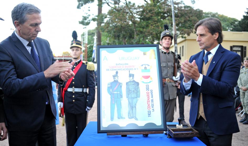 El presidente de la República, Luis Lacalle Pou, encabezó la celebración por los 100 años del Batallón Libertad o Muerte de Comunicaciones n.° 1, cuya sede está ubicada en camino Casavalle n.° 4600. En la ocasión, se distinguió con la medalla al mérito militar al pabellón de guerra de la referida dependencia y además, el Correo Uruguayo presentó un sello postal conmemorativo.