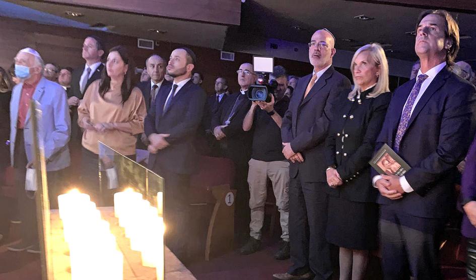 Asimismo, se rememoró el hecho a través de piezas audiovisuales que narraron la liberación y la creación del Estado de Israel, cuadros plásticos, liturgia en referencia al tema y el encendido de las seis velas. El presidente Luis Lacalle Pou fue el encargado de encender la última luminaria.