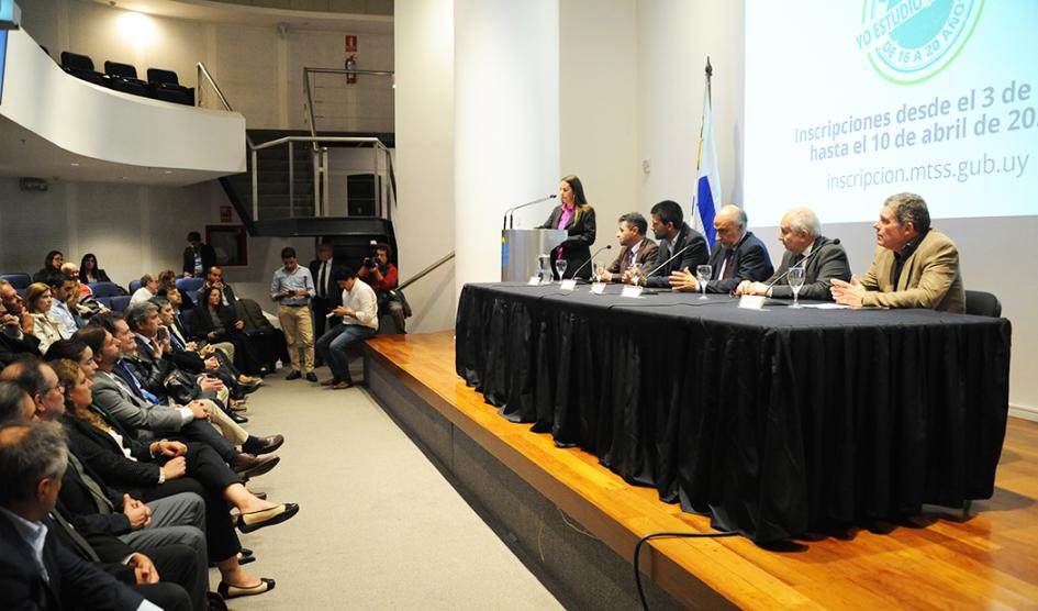 El presidente Luis Lacalle Pou encabezó la presentación de la primera edición del programa Yo Estudio y Trabajo para el sector privado, destinado a brindar a 250 estudiantes, de entre 16 y 20 años, una primera experiencia laboral formal. El plan, cuyas inscripciones están abiertas, permitirá la vinculación con el ámbito del trabajo y contempla el desarrollo de competencias laborales y la continuidad del proceso educativo