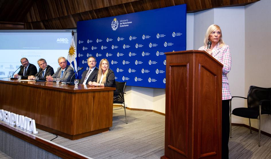 La presentación de Agro en Punta Expo & Business se efectuó este miércoles 25, en la sede del Ministerio de Relaciones Exteriores. También asistieron el ministro de Ganadería, Agricultura y Pesca, Fernando Mattos; el representante del Banco Interamericano de Desarrollo, Luiz Ros, y el vicedirector del instituto Uruguay XXI, Eduardo Rodríguez, así como los organizadores.