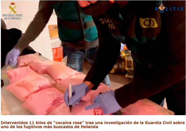 En el registro, además de proceder a la detención de las dos personas, los agentes han intervenido, 300 kilogramos de MDMA, 3 de heroína y 11 kilogramos de la conocida, entre otras denominaciones, como “cocaína rosa”, además de 350.000 euros en efectivo, dos máquinas para el conteo de billetes y varios teléfonos móviles. Según apuntan diversos estudios, el 2CB es, hoy en día, una de las nuevas sustancias psicoactivas (NPS) más extendidas en Europa y Australia. A nivel internacional, esta droga es comúnmente empleada en combinación con otras drogas ilegales, en particular MDMA, y es considerada por algunos expertos como «favorita» en el mercado mundial de las drogas. Además, la 2C-B se encuentra entre los compuestos químicos que aparecen a menudo como adulterantes cuando se analizan pastillas de MDMA, lo que significa que muchos consumidores pueden haberlo consumido sin saberlo. Todo ello ha llevado a que en algunos ámbitos se la catalogara como “la droga de la alta sociedad” por su exclusividad, dada su escasa disponibilidad y su elevado precio, indicando que el precio de la 2CB puede alcanzar más de 100 euros por gramo. Se considera de la misma manera, debido a las escasas cantidades todavía incautadas, que por el momento la síntesis de la droga se presenta sin acumulados o stock por estar fabricada posiblemente “bajo pedido”, o con destino a zonas y momentos muy concretos. De hecho, esta incautación se convierte en la mayor aprehensión de esta sustancia en nuestro país, no habiéndose intervenido antes cantidades superiores a los dos kilogramos. Además de las unidades policiales ya mencionadas, dada la peligrosidad de estas personas, se contó con la colaboración de la Unidad Especial de Intervención (UEI) de la Guardia Civil para efectuar la entrada en el domicilio, contando también con canes especializados del Servicio Cinológico de la Comandancia de Valencia. El Juzgado de Instrucción número 1 de Valencia ha decretado prisión incondicional sin fianza para los dos detenidos, siendo informado el Juzgado Central de Instrucción nº 2 de la Audiencia Nacional sobre la existencia de una OEDE sobre uno de los detenidos.