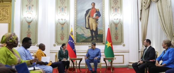 En imágenes transmitidas por Venezolana de Televisión se aprecia el momento en el cual Maduro y Kyélem de Tambela estrecharon las manos en señal de la cooperación bilateral entre estas dos naciones, que están cerca de alcanzar el vigésimo aniversario del establecimiento de las relaciones diplomáticas entre ellas.