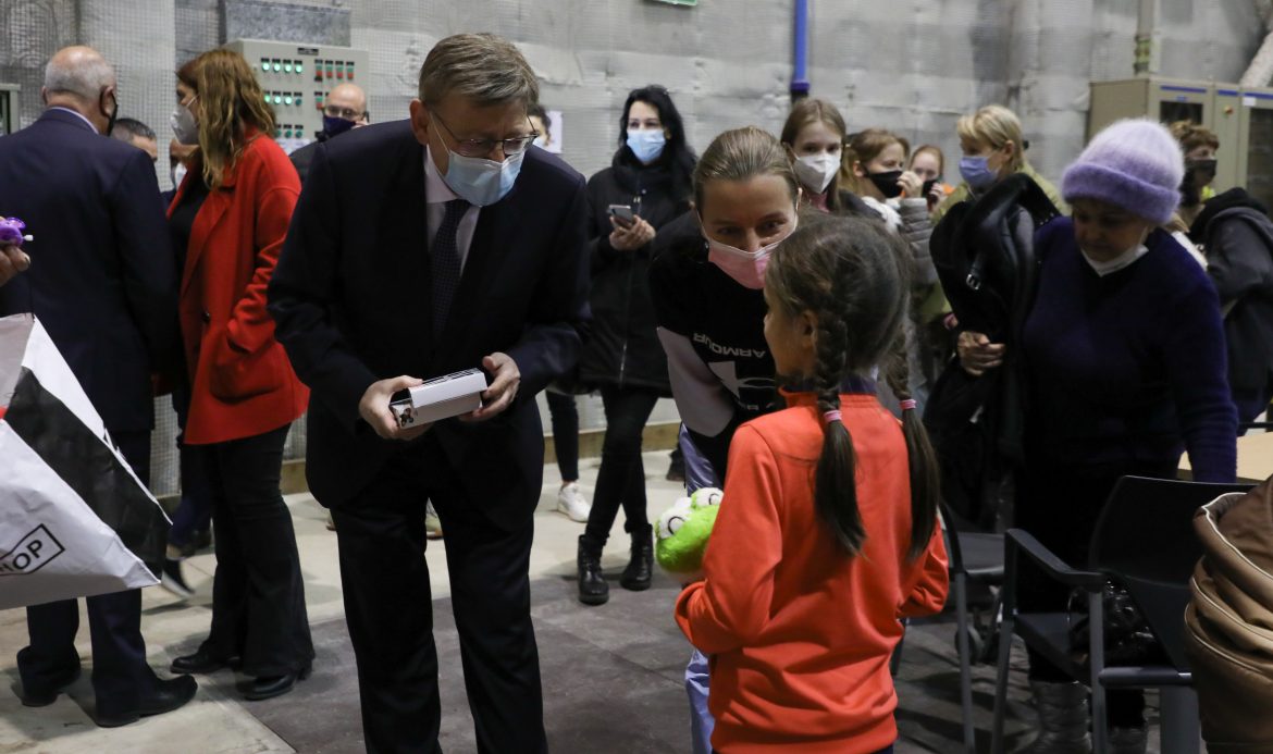 El president de la Generalitat, Ximo Puig, ha visitado a las personas refugiadas procedentes de Ucrania que están siendo atendidas por personal de la Generalitat en las instalaciones de Ciudad de la Luz.